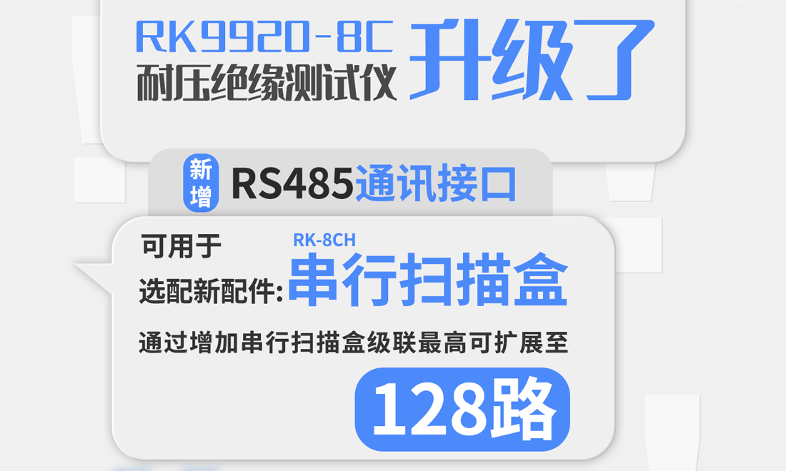 日期:2024-12-12美瑞克RK9920-8C多通道交直流耐壓絕緣測試儀在儀器后面板升級新增一個RS485通訊接口可用于連接選配件RK-8CH串行掃描盒,增加8-128個串行掃描通道,大大加快測量的測試速度。 -