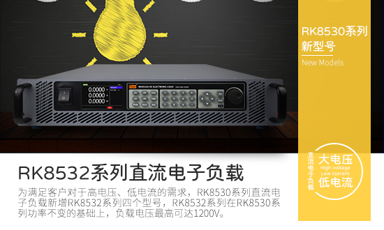 日期:2025-01-10為滿足客戶對于高電壓、低電流的需求,RK8530系列直流電子負載新增RK8532系列四個型號,RK8532系列在RK8530系列功率不變的基礎上,負載電壓最高可達1200V。
